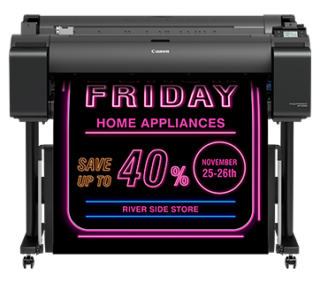The 36” poster printer with PANTONE™2 calibration delivers wide colour gamut and vibrant colours to create compelling advertisements and posters enhanced by fluorescent colours.